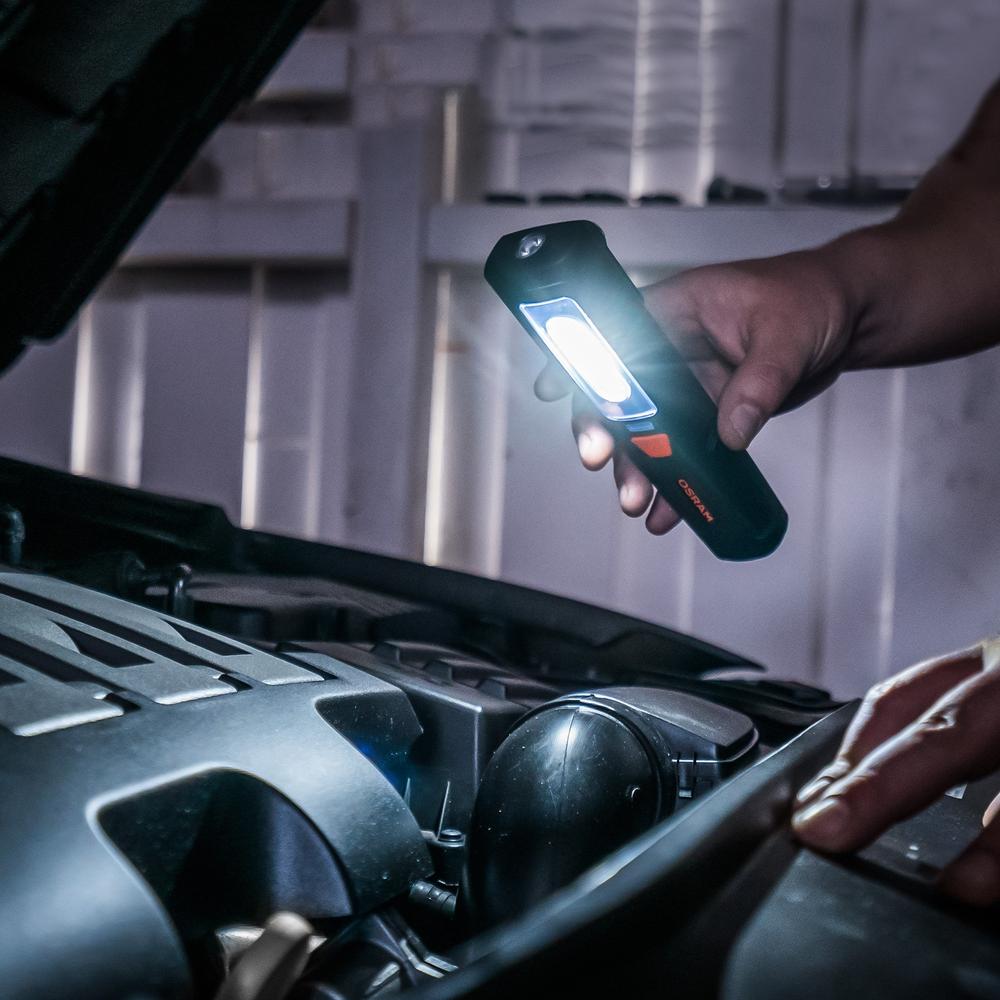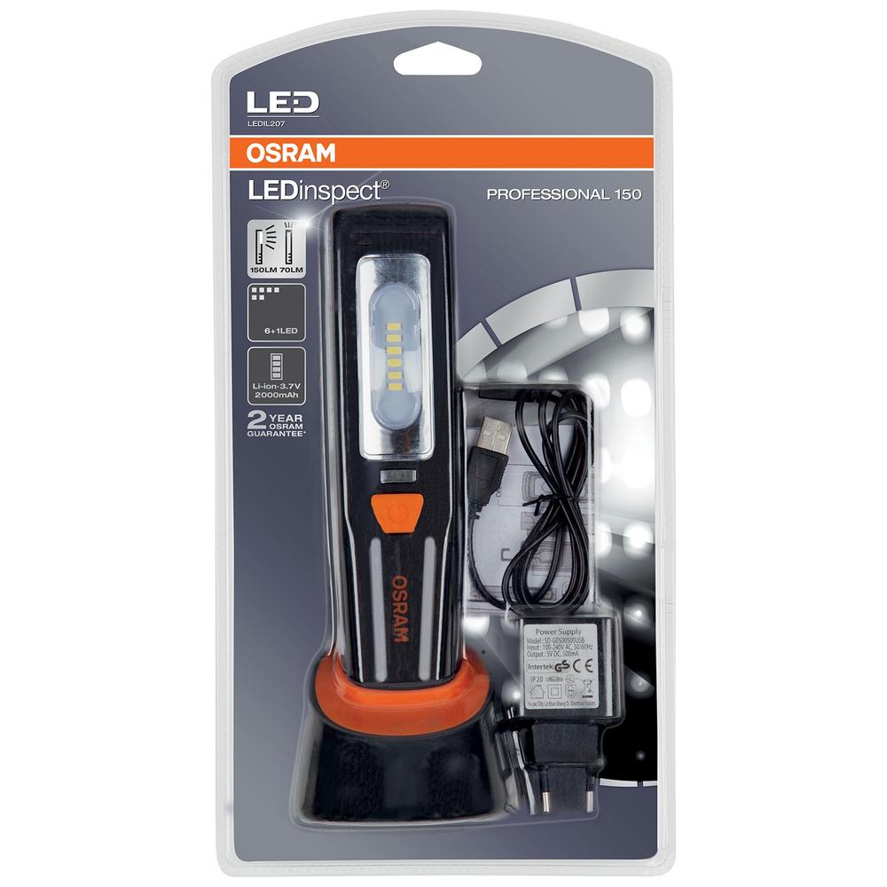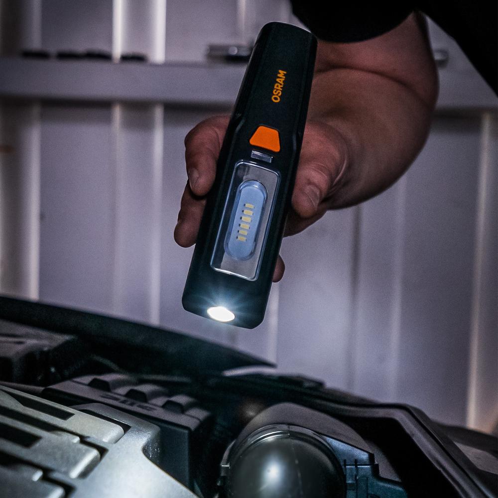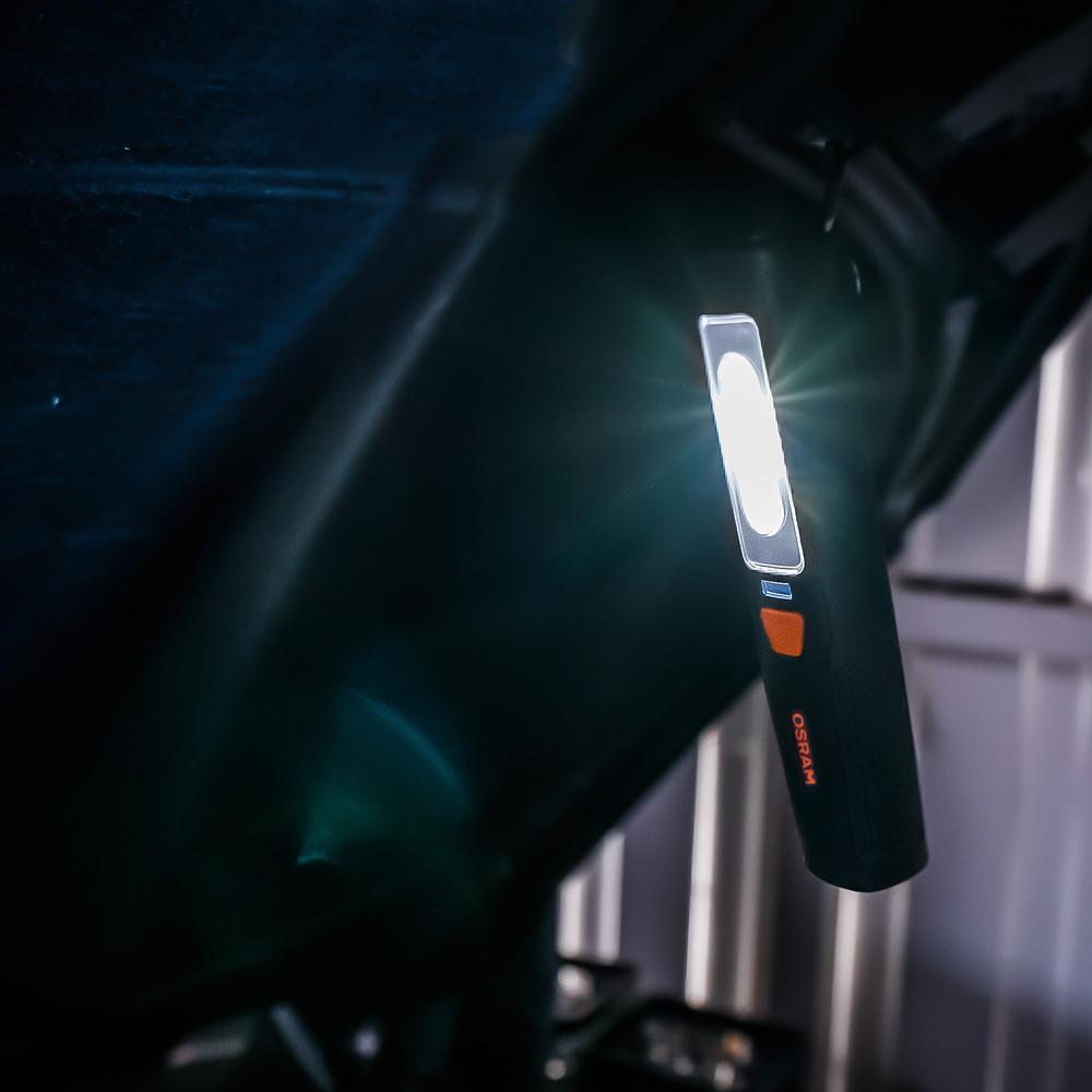 LEDinspect PROFESSIONAL 150 je dobíjacie LED inšpekčné svietidlo v kompaktnom a vysoko kvalitnom dizajne. Svietidlo umožňuje dve rôzne nastavenia – plošné svetlo s až 150 lúmenmi a vreckové svietidlo s až 70 lúmenmi – je ľahko uchopiteľné a má povrch odolný voči nečistotám. Vďaka magnetu a klipsu sú Vaše ruky pri práci na vozidle stále voľné. OSRAM poskytuje na tieto výrobky záruku 2 roky.